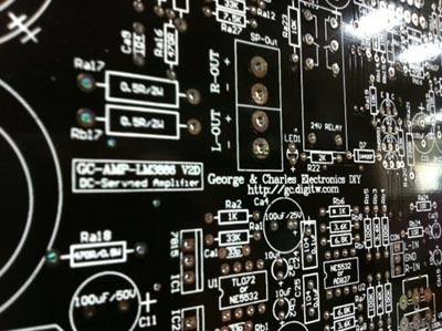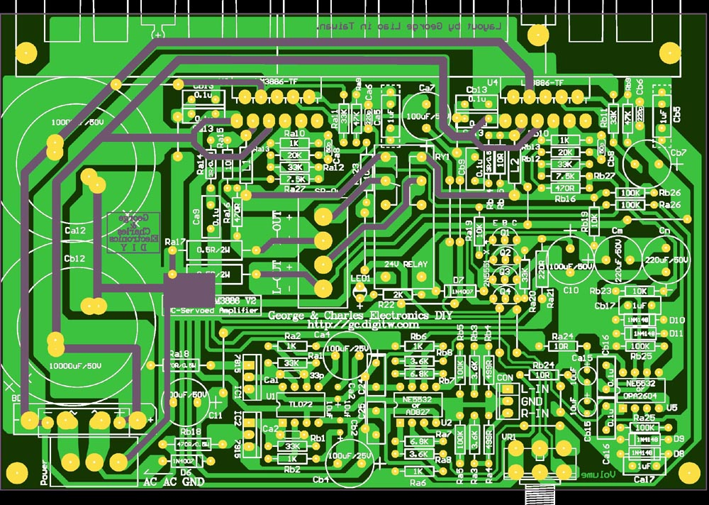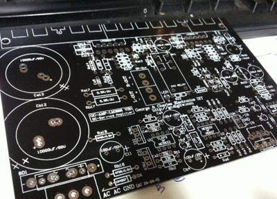 一般市售的感光電路板的銅鉑厚度較薄,所以如果可能,在焊鍚的時後,在後級電源經過的部份銅鉑,可以加上一層焊鍚,以加強它的電流能力。