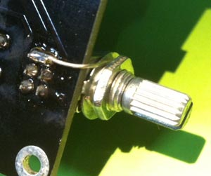 - 目前因沒裝機殼, 所以沒法接機殼地,所以在手接近或碰觸音量旋鈕時可能會有干擾,建議可以從下方VR的地腳(第1腳)焊條導線來鎖在VR上,如下圖: