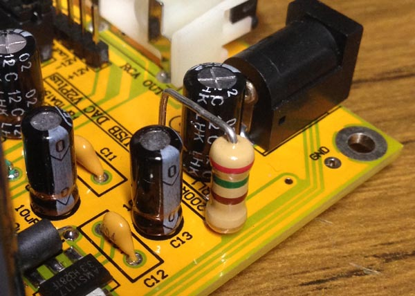 - RA-1耳擴電路由於使用了JRC4556這個OP,它的特點是功率大,但也伴隨著小小的缺憾,就是有點背景嘶聲較大的情況,這個問題在網路上是常見的討論,其實在聽音樂時並沒什麼大影響,但對完美主義者可能會希望它能再改進,第一,換其他雙OP如NE5532,OPA2604等…..,第二,原RA-1在許多網路的討論中可以發現再對那顆464K的電阻有爭議,因有人又在RA-1拆解時發現這顆阻也有用464R的,大家可能會說,怎會差那麼多? 討論中是說可能原廠為了高、低阻抗的耳機而做的變化,也因為在換成464R時,Gain變小了,有人已經發現這樣可以降低嘶聲的情況,原來使用464K時的放大倍率G=1+(464K/121K)=4.83倍,換了以後雖增益變小G=1+(0.464K/121K)=1.0倍,看起來好像差好多,但實際使用上其實還是可以得到我們要的音量的, 且”嘶”聲真變小了!還有原來因雙VR的雙層線性無法完全相同而產生的小音量左右不平衡的情況也跟著改善了,所以如有一樣困擾的人可以跟據此點來改機。
